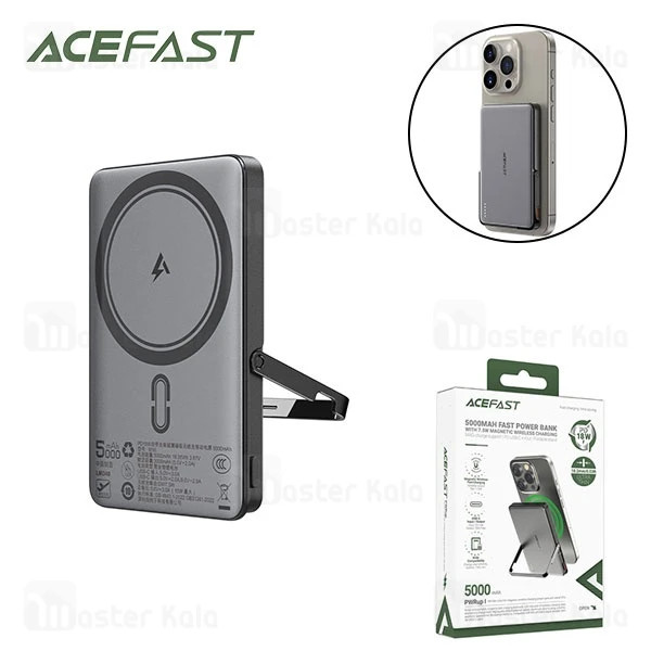پاوربانک وایرلس فوق نازک 5000 مگ سیف ایس فست ACEFAST M16 توان 18 وات دارای استند